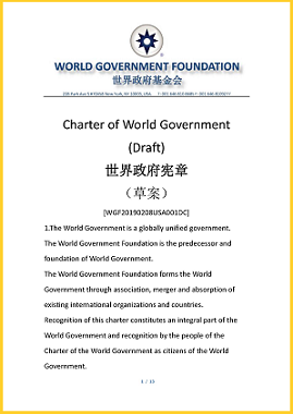 The World Government Foundation is the legal and financial foundation of the World Government and the initial form of the World Government. The World Government Foundation is the issuer of the World Dollar (Yuan) . World Government Foundation was incorporated by politician and economist Dr.Hengjie Liu in 2017, under this international organization, Dr.Hengjie Liu have some entities already incorporation. in the year 2006 established World Famous Brand Association and in 2009 established an non-profit corporation World Brand Associaiton for research work and education in this field. World Unied Equity Echange Corporation(WUEE) , World Satellite Television Network Group INC.(WSTVN),Unied Nations Television INC.(UNTV),World Television INC.(WTV), and some enterprise were initial member of World Famous Brand Associaiton. World Government Foundation(WGF) membership are governments and government arrangement entities,international organizations,some service companies. The WGF prime mission is world peace and global intergration.